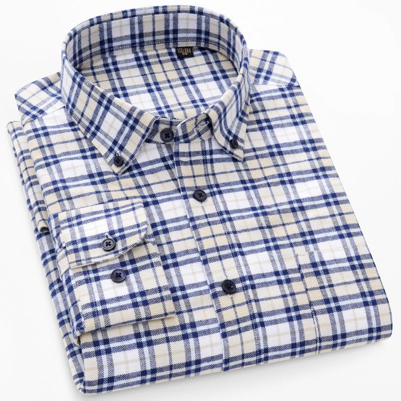 大江大河/G-RIVER 全棉水洗牛津纺男士长袖衬衫格纹爸爸装宽松 抗静电 38-45