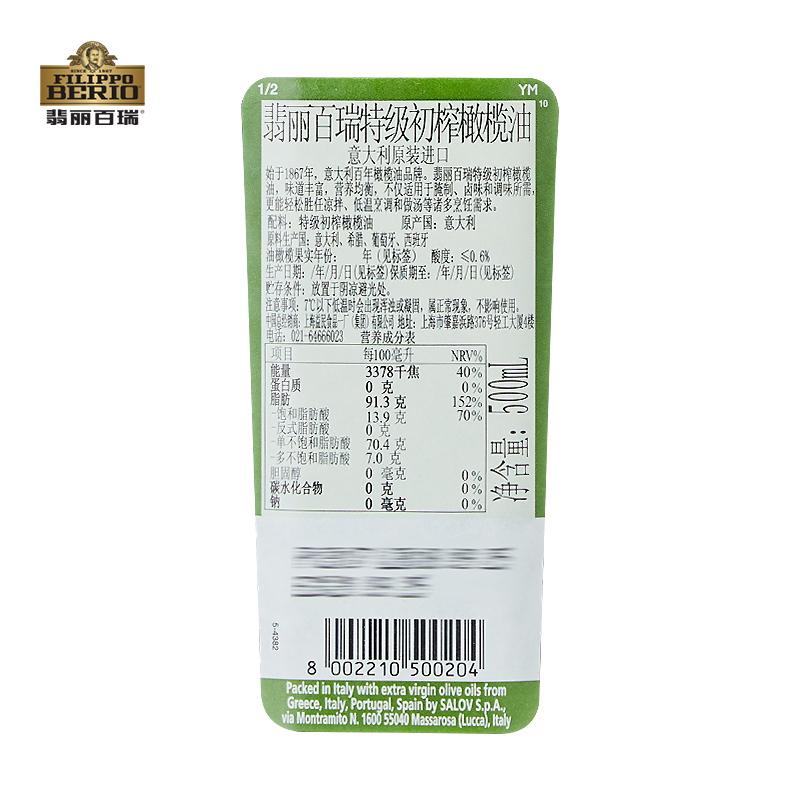 翡丽百瑞 意大利原装进口 特级初榨橄榄油 500ml/瓶