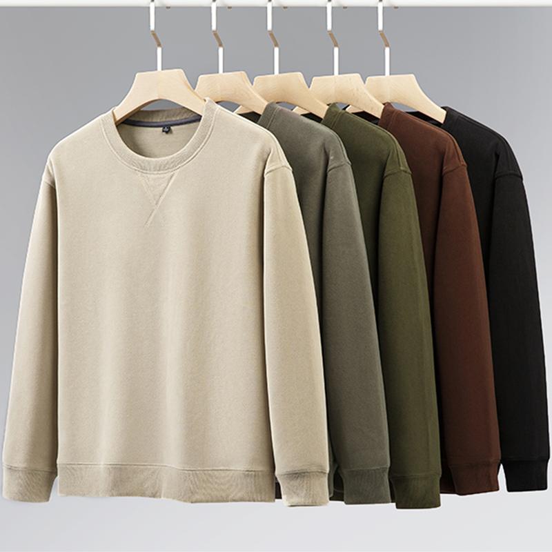 大江大河/G-RIVER 男式纯色圆领套头长袖大码棉卫衣加绒加厚 保暖奥粒绒 宽松直筒 s-4XL