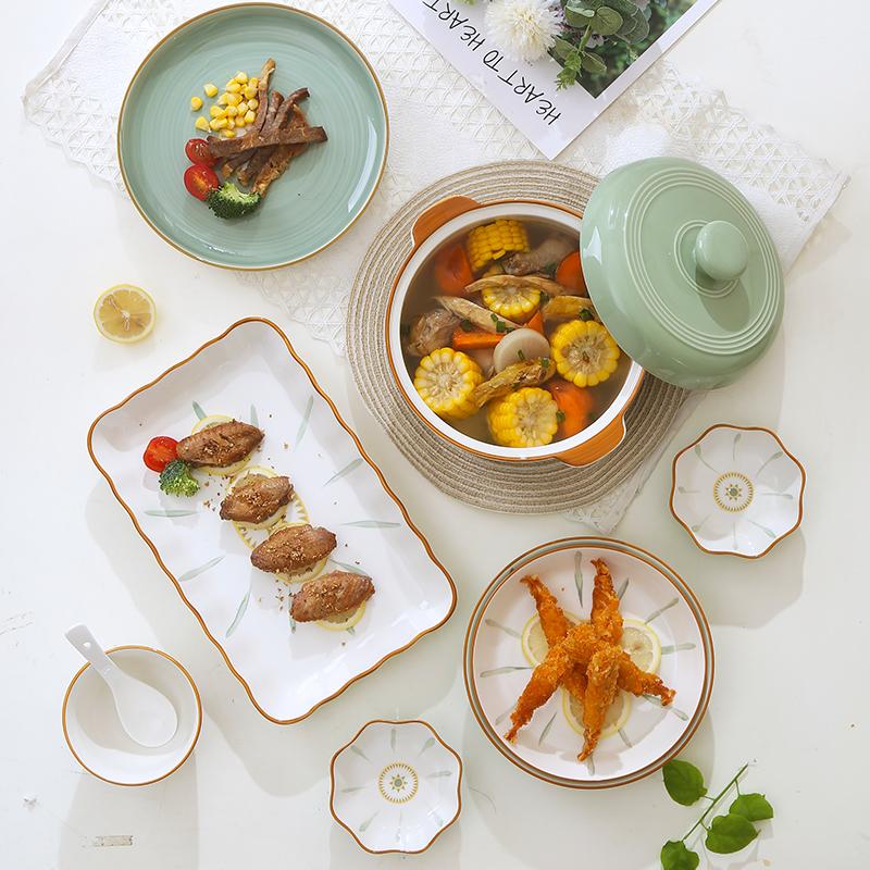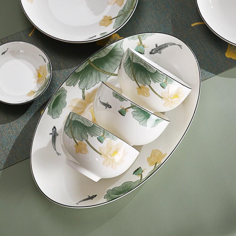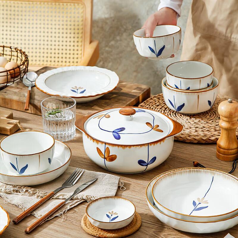 裕行 碗 盘子 碗碟套装 家用盖碗 碗筷汤碗陶瓷饭碗餐具套装可微波炉加热