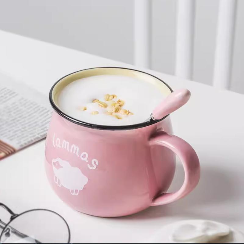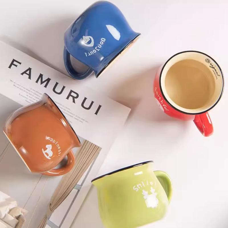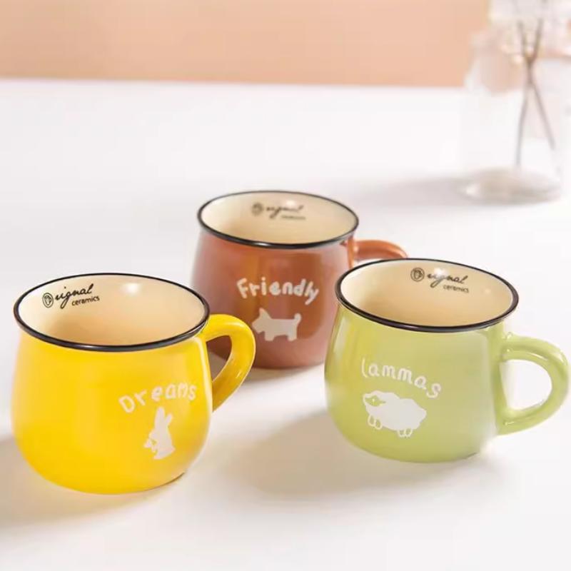 裕行 陶瓷杯马克杯咖啡杯 水杯早餐牛奶杯复古早餐杯300ml颜色随机