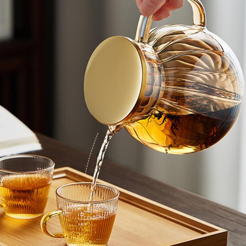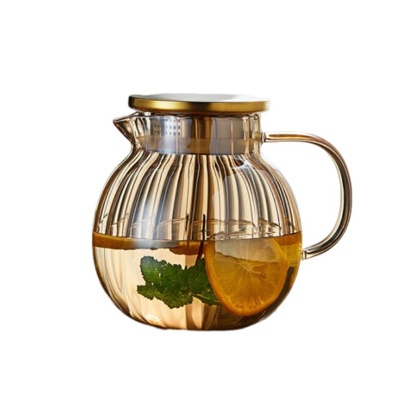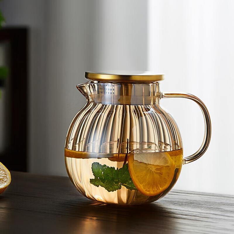 唯铭诺 金色竖纹苹果壶1.2L 家用加厚凉水壶耐高温泡茶壶