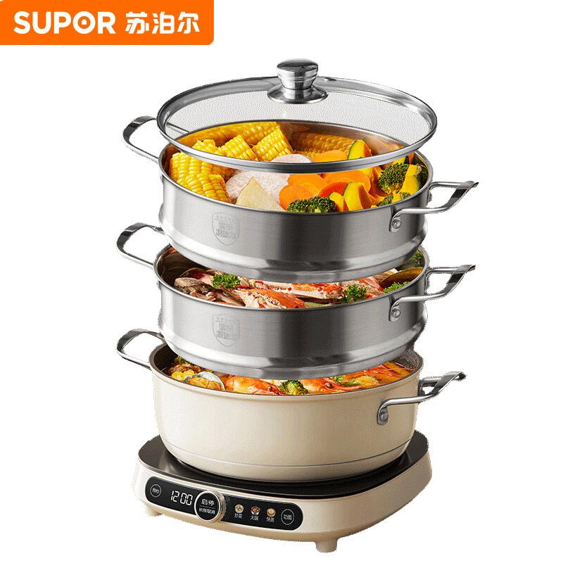 苏泊尔电磁炉IH电磁加热炫彩触控屏带双层蒸格2100W C21-IC803E