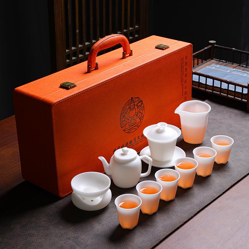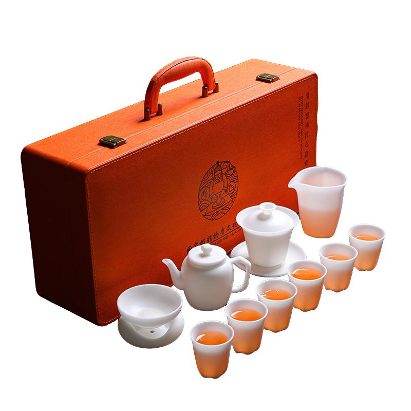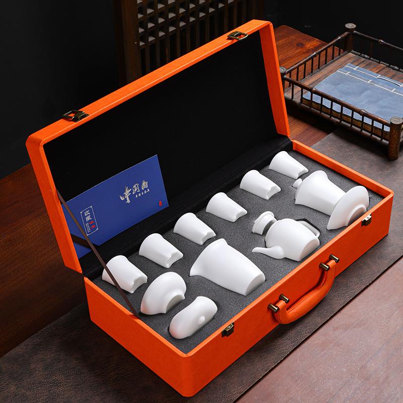 1茶壶、1盖碗、1茶海、1茶漏、1底托、6茶杯、1皮箱。