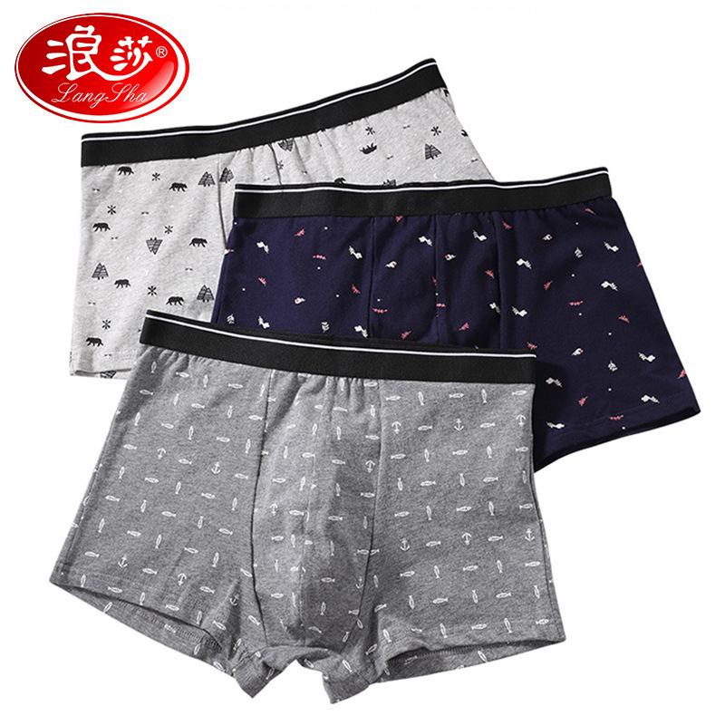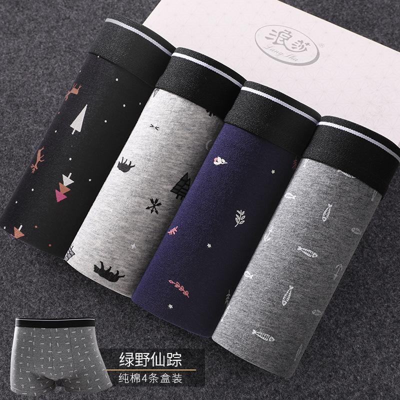 浪莎 男士内裤4条装中腰平角裤纯棉盒装 舒适透气