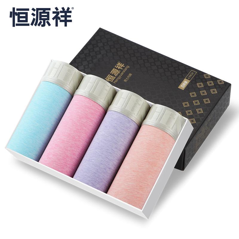 恒源祥/HYX 天然彩棉无染色男士平角内裤四条装 银离子抗菌 TC0122/TC0123
