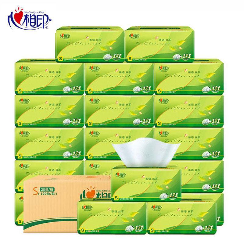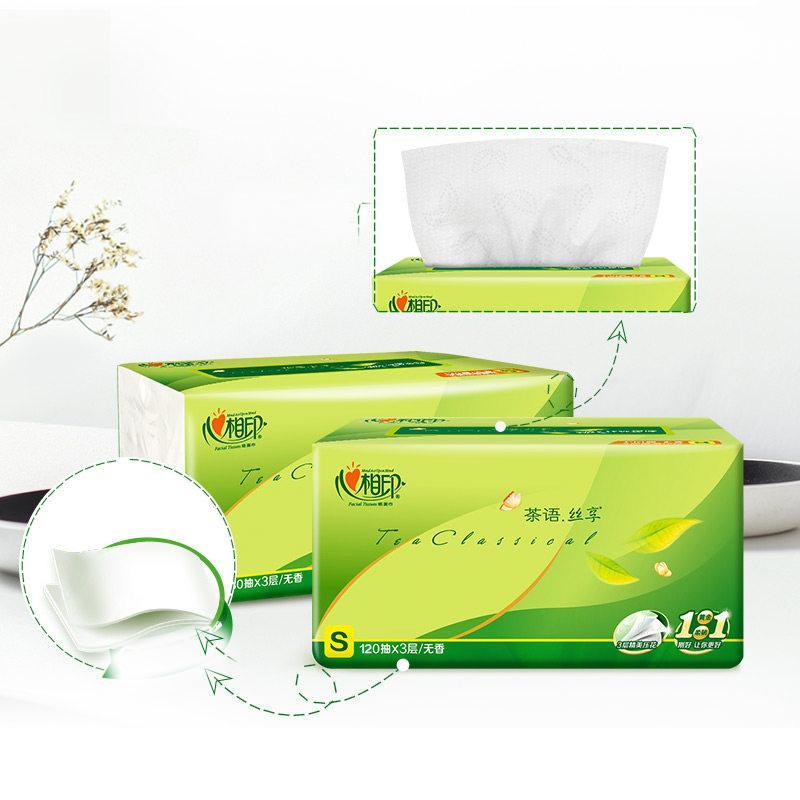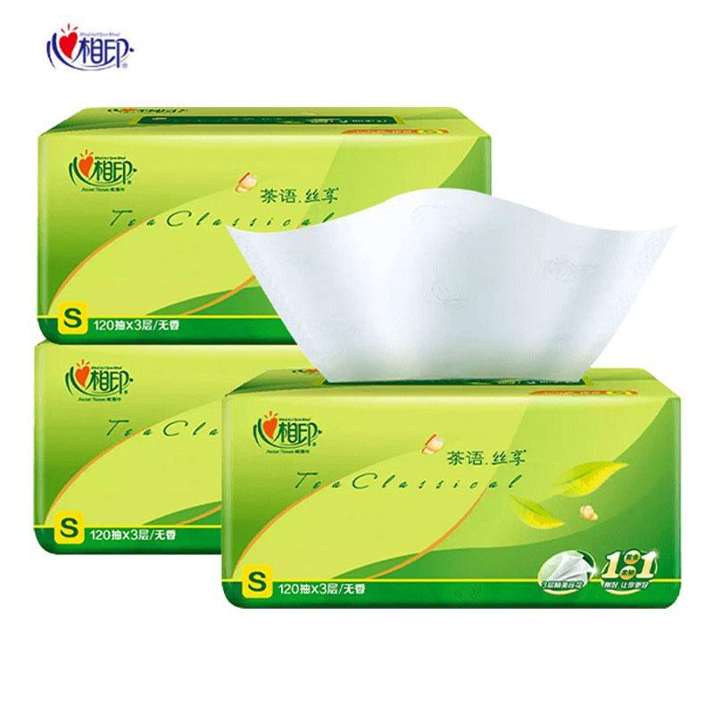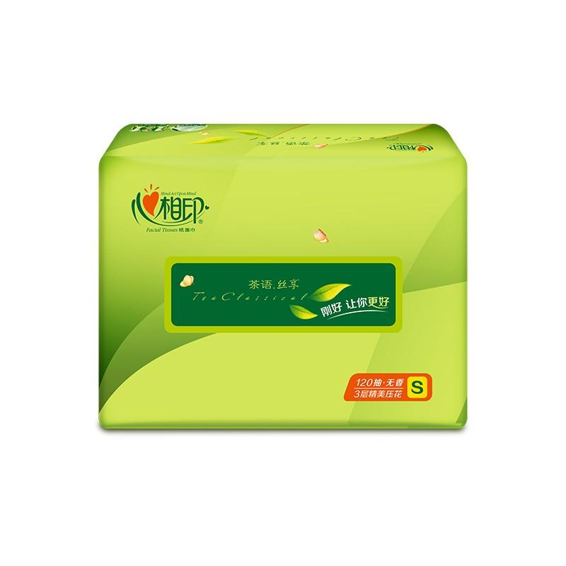心相印 纸巾 茶语丝享 S码3层120抽面巾纸 抽纸 3包/20包 DT15120