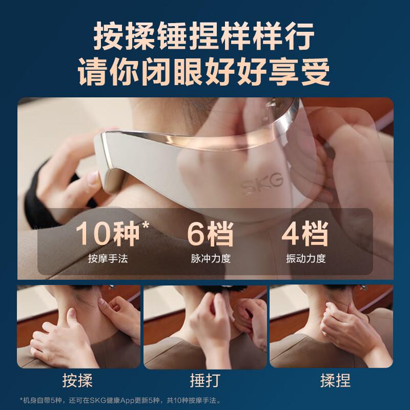 SKG 颈椎按摩器 颈部肩颈脖子 物理捶打热敷脉冲 智能护颈折叠按摩仪 G7 2代豪华款 米金色
