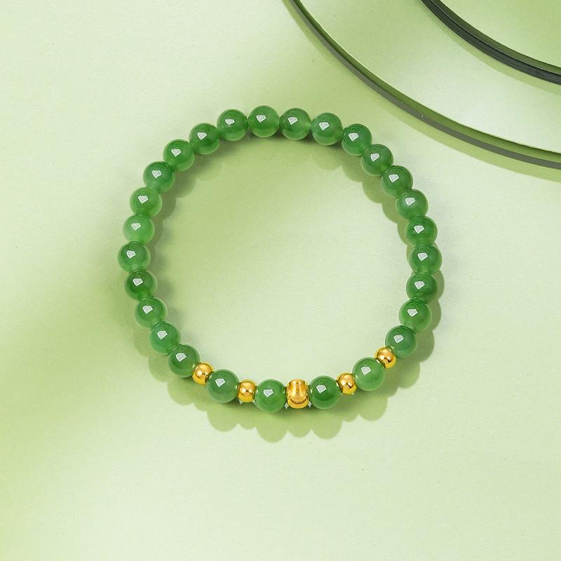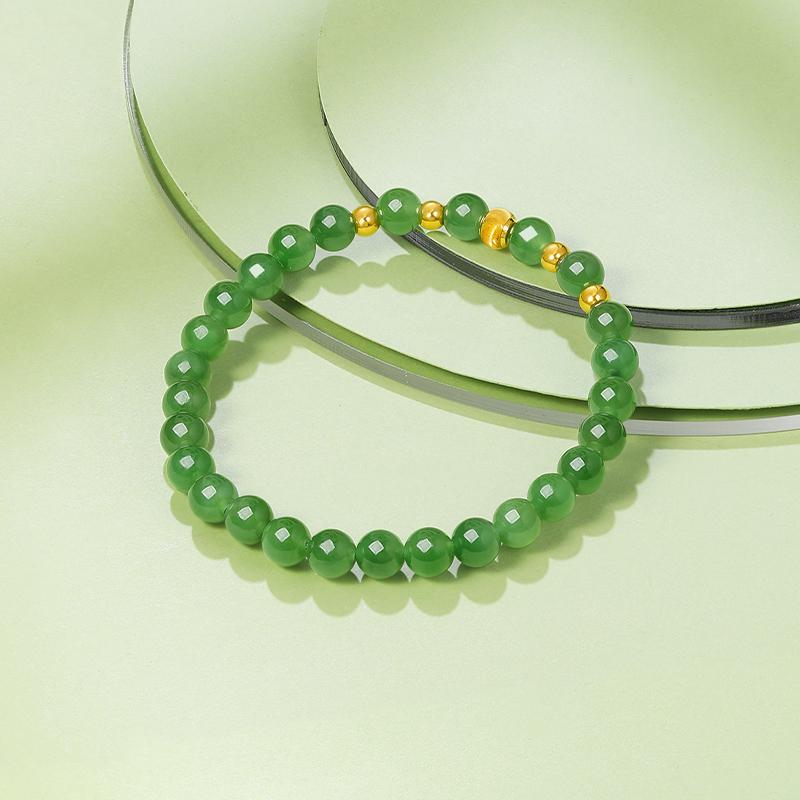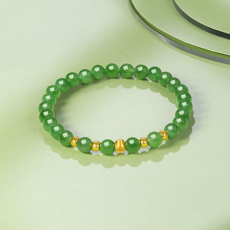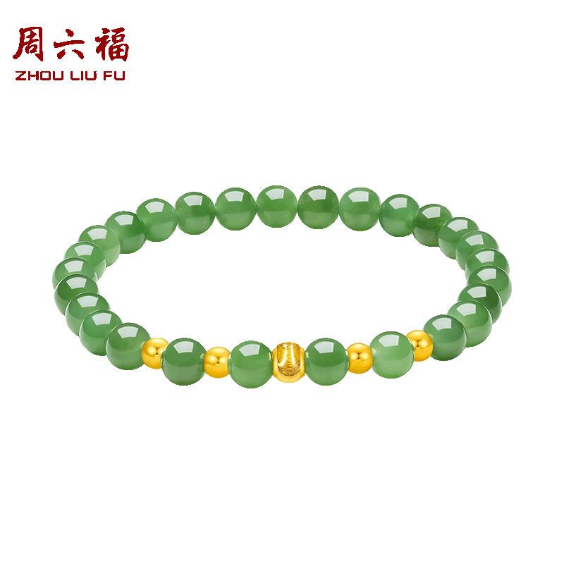 周六福珠宝金镶玉手链女士和田碧玉石黄金东方雅韵手串送女友礼物