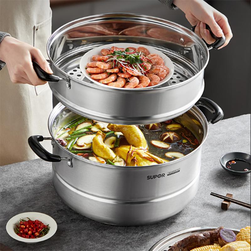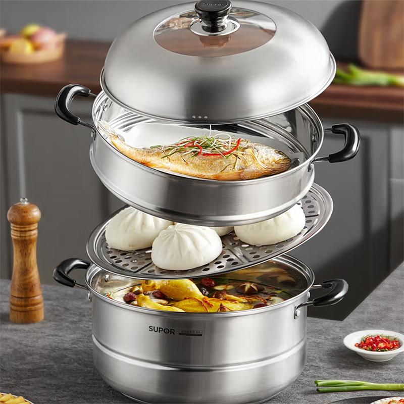 苏泊尔蒸锅好帮手双层复底汤锅蒸笼 高拱盖 SZ30/32B5