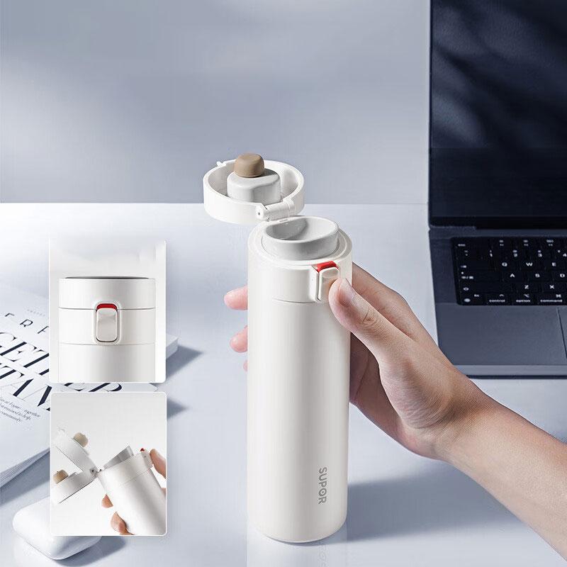 苏泊尔智能显温316L不锈钢保温杯500mL一键开合带茶隔