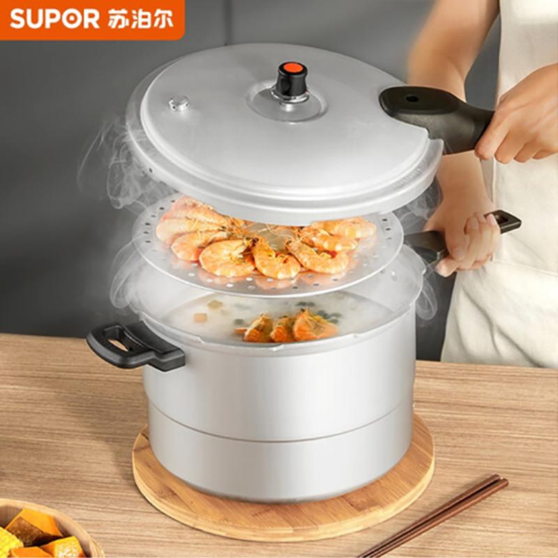 苏泊尔高压锅24cm铝合金压力锅7L带蒸格 YL249H2