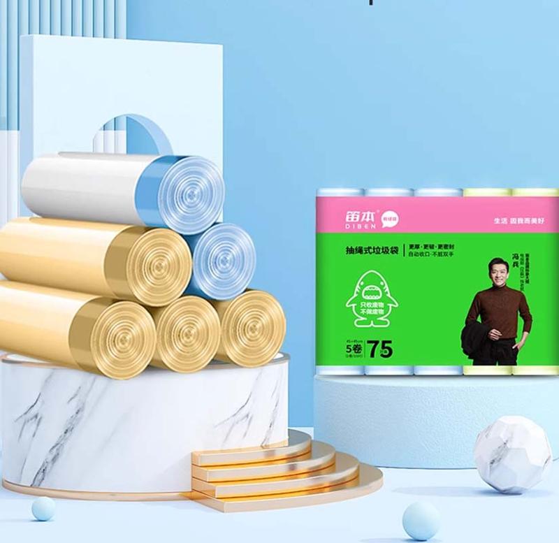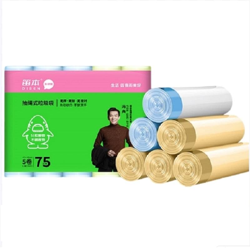 笛本抽绳式垃圾袋 承重强不易破加大容量自动收口不脏手 75只/150只