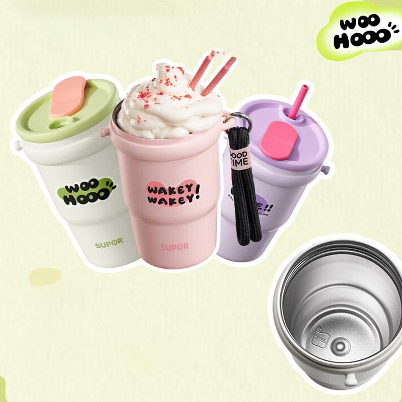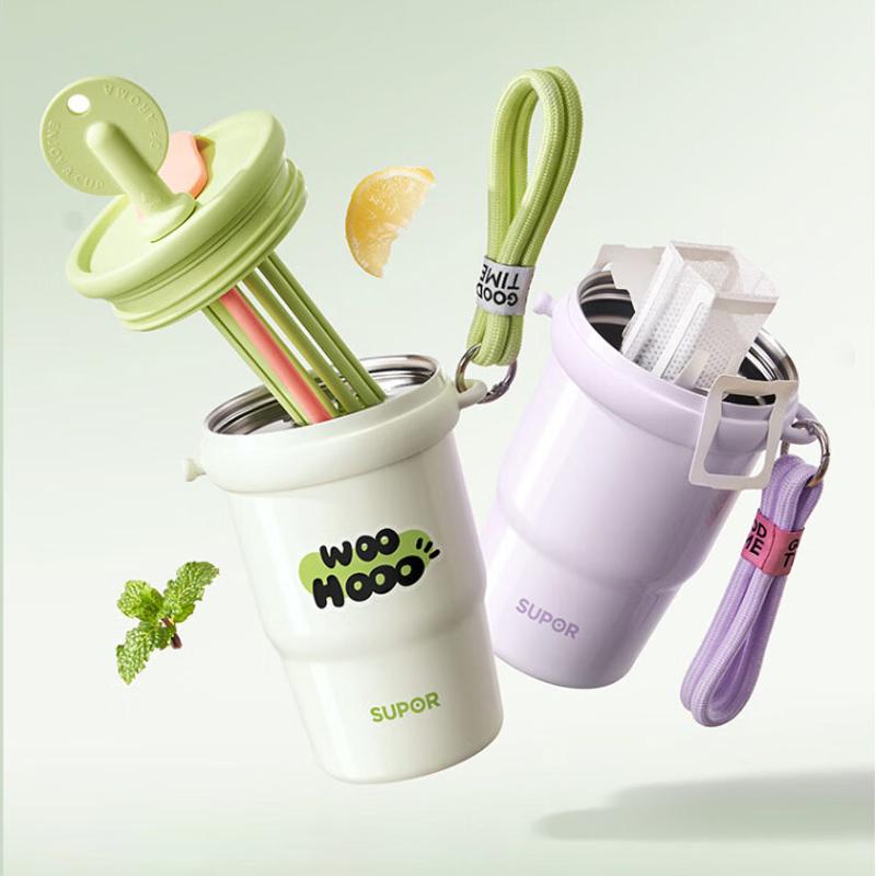 苏泊尔保温杯吸吸杯广口车载泡茶杯650ml【提绳+茶仓】
