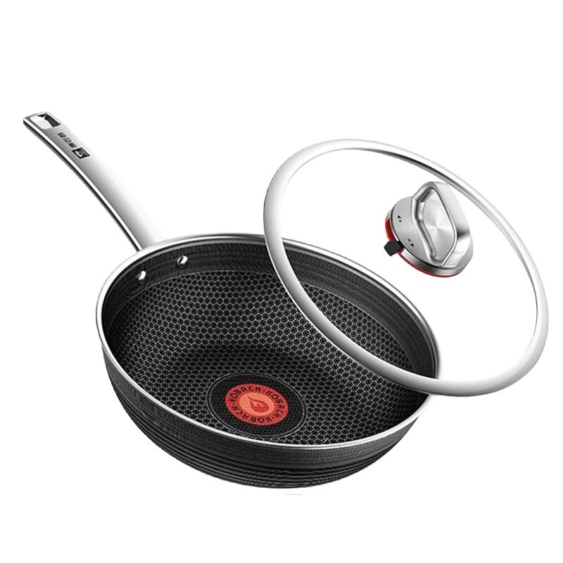 康巴赫 蜂窝炒锅第五代/六代/七代双面蜂窝煎锅炒锅不粘锅抗菌不锈钢电磁炉燃气通用