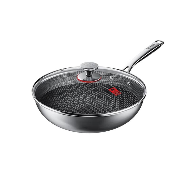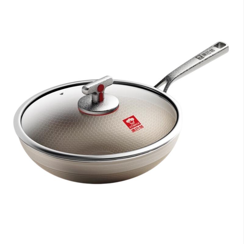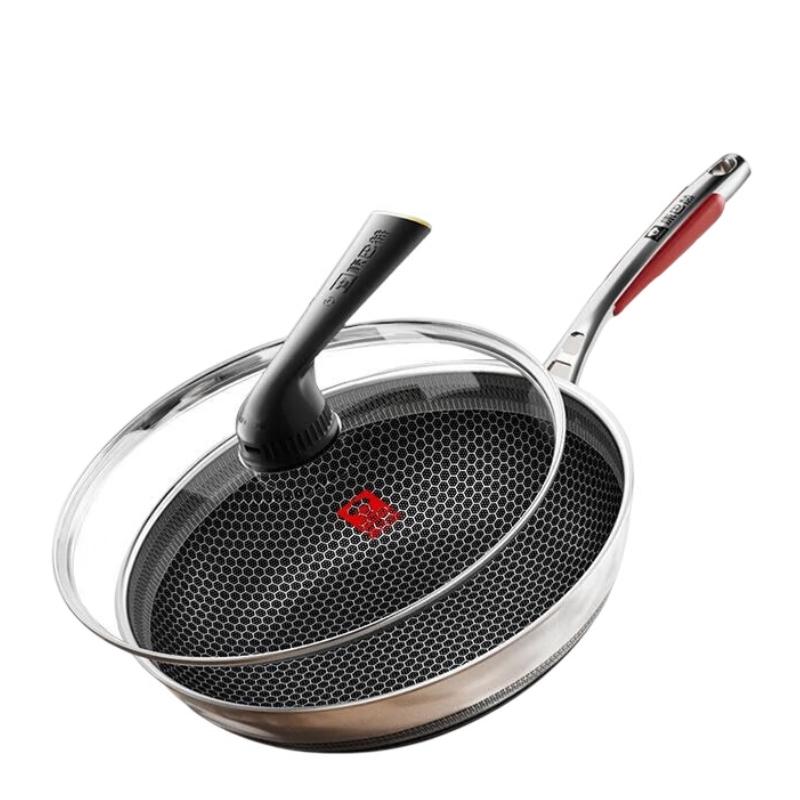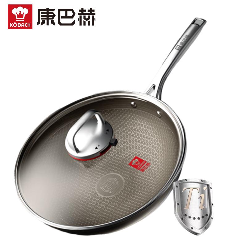 康巴赫蜂窝煎炒锅不粘锅不锈钢煎炒锅炒菜锅可用钢铲燃气电磁炉通用