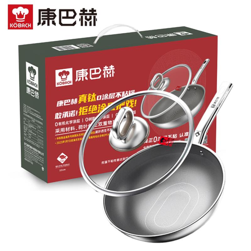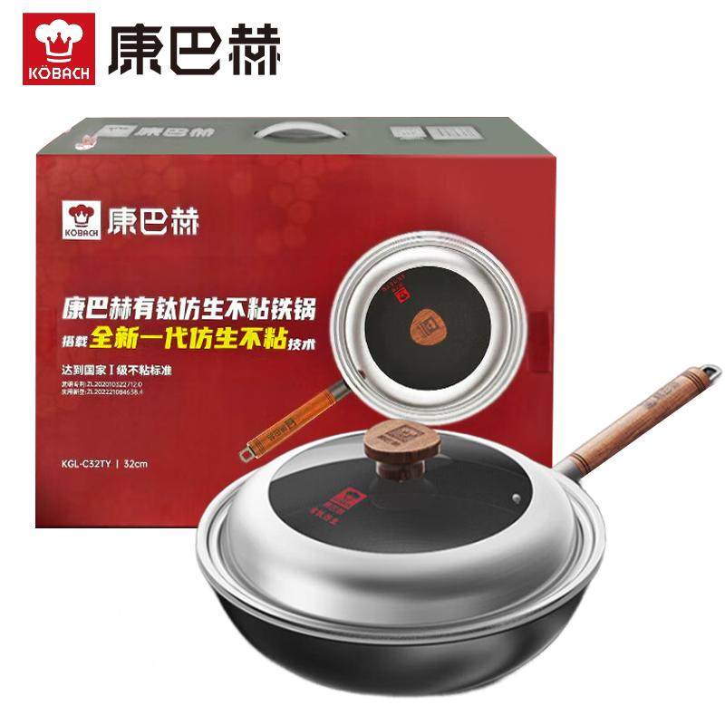 康巴赫 有钛仿生不粘锅炒锅煎锅家用无涂层仿生抗菌炒锅