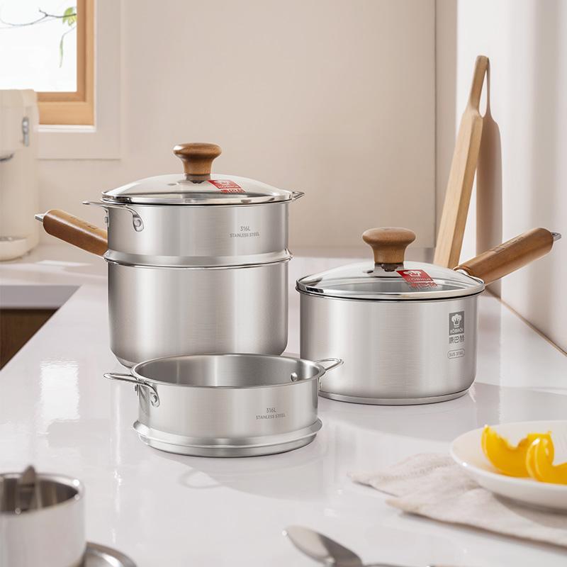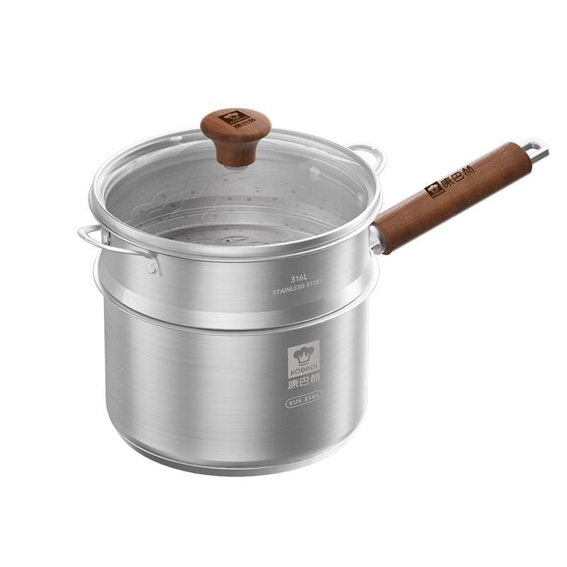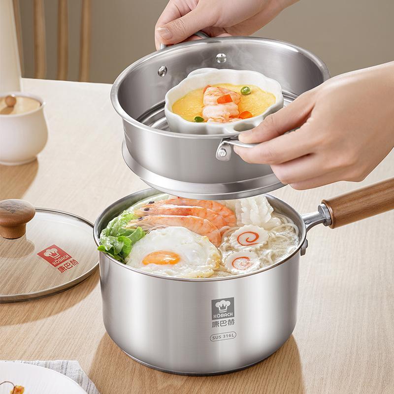 康巴赫无涂层316L不锈钢煎煮一体小奶锅煮面锅健康奶蒸锅16cm/18cm