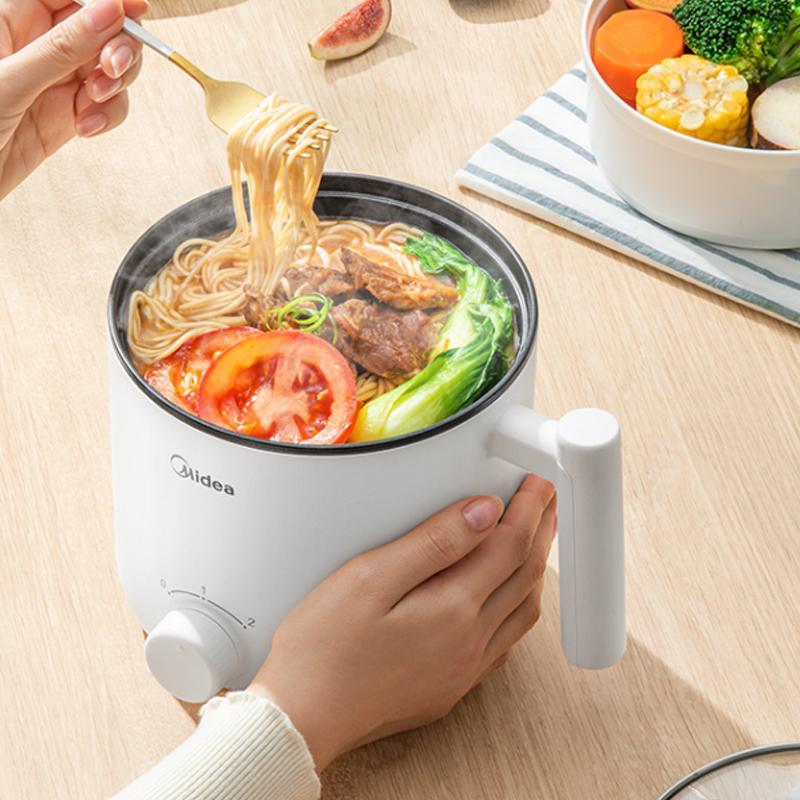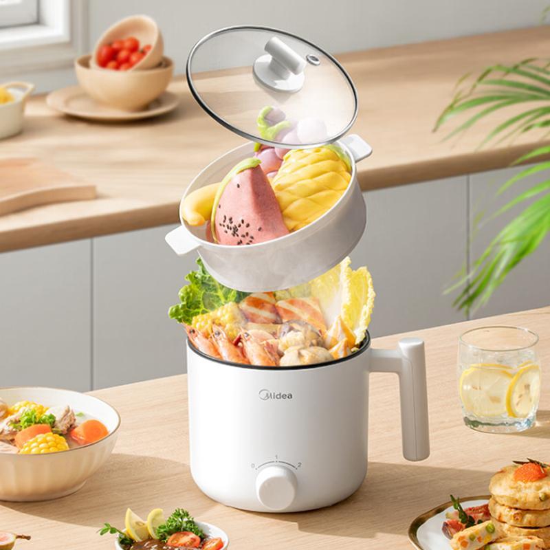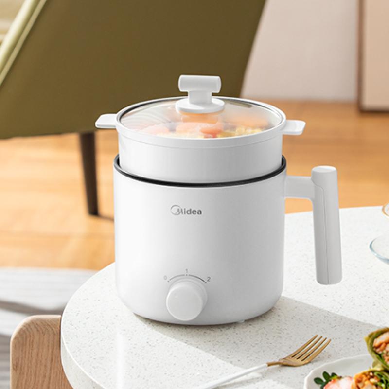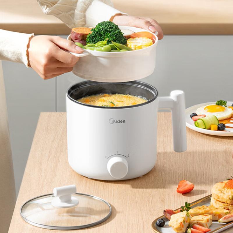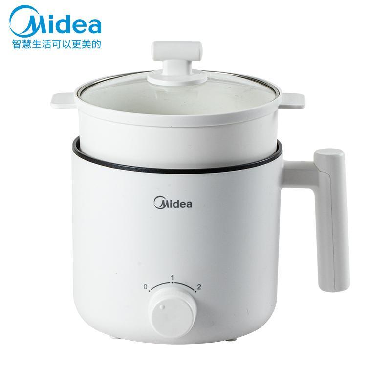 美的电煮锅 电热锅 宿舍小电锅 电蒸锅 学生寝室一体泡面小火锅 多功能锅 XZE1613 1.7L 配蒸笼 额定功率600W