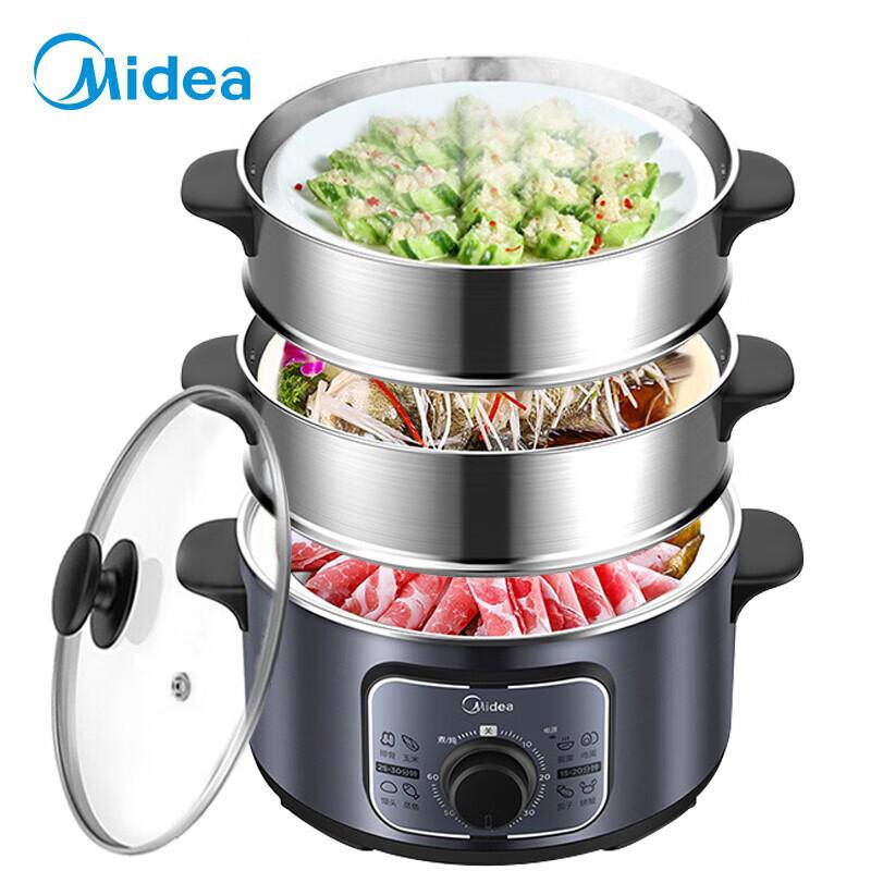 美的多用途锅电蒸锅电煮锅 多功能蒸煮锅 电火锅电热锅三层大容量不锈钢机身 26cm口径大容量ZG26EASY401 10L