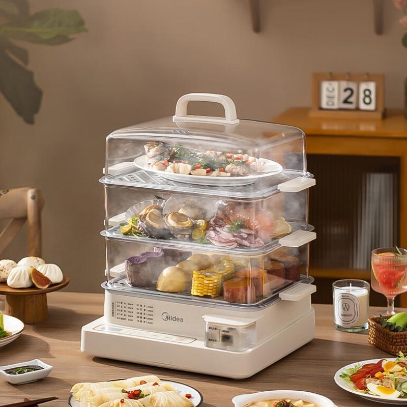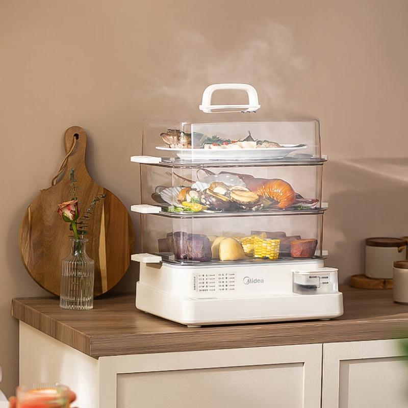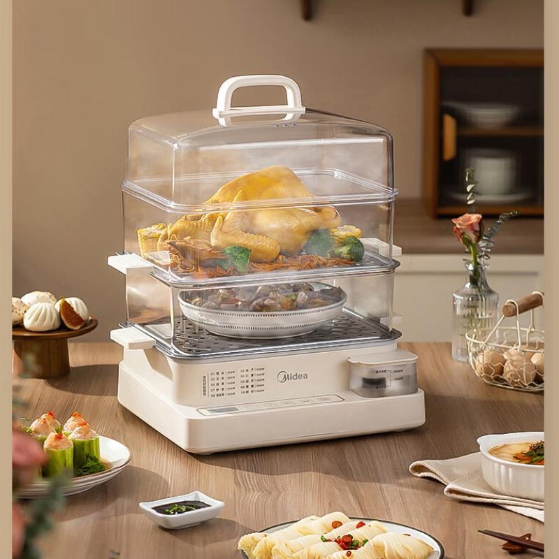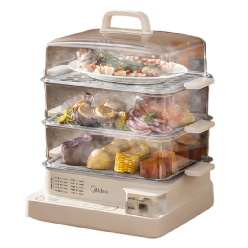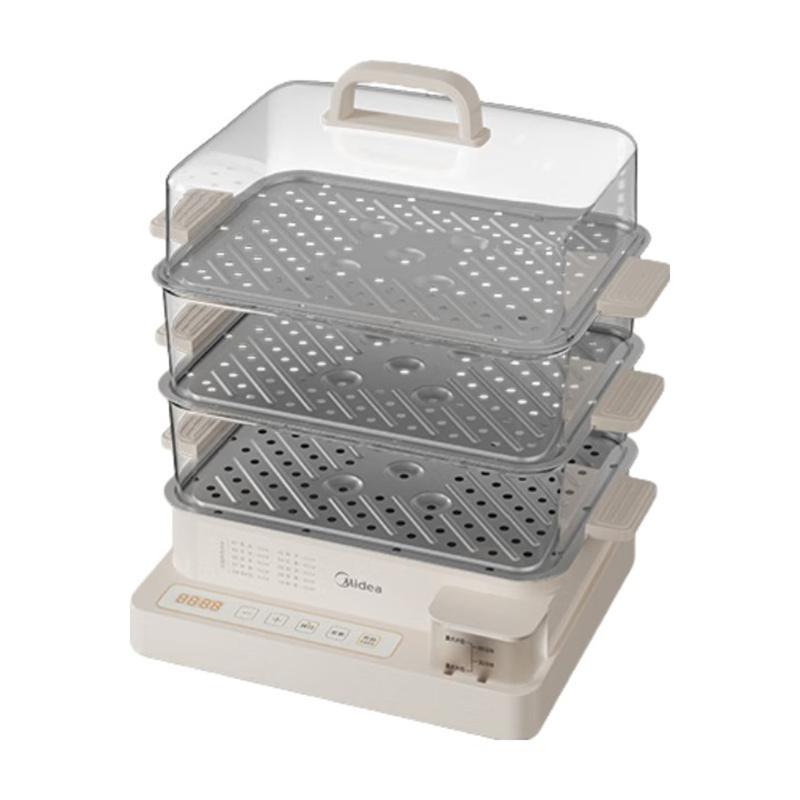 美的电蒸锅 22L三层大容量外置加水蒸锅电蒸锅 透明视窗不锈钢蒸片多用途蒸包子锅多功能锅ZGC322301
