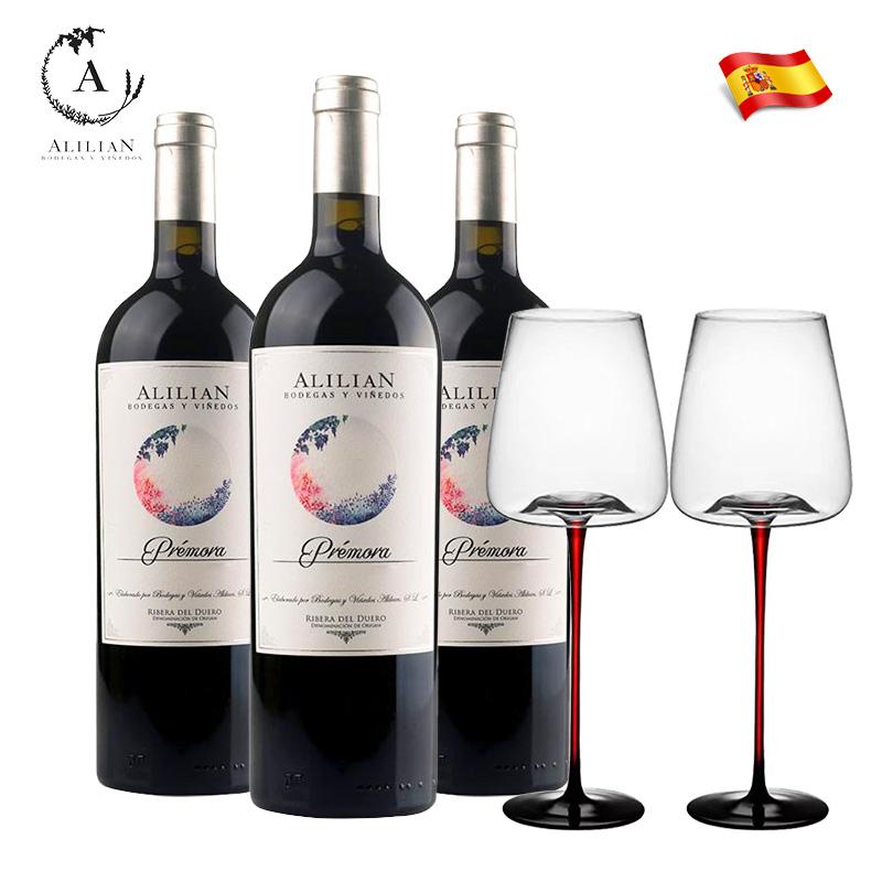 茉兰朵 Morando西班牙原瓶原装进口 梦澜干红葡萄酒 750ml*3瓶+高脚红酒杯2支