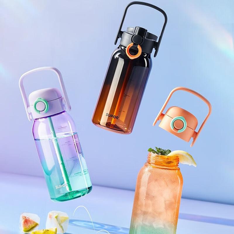 苏泊尔水杯一键开合双饮杯1L大容量吸管杯运动水壶 KCP10LC20