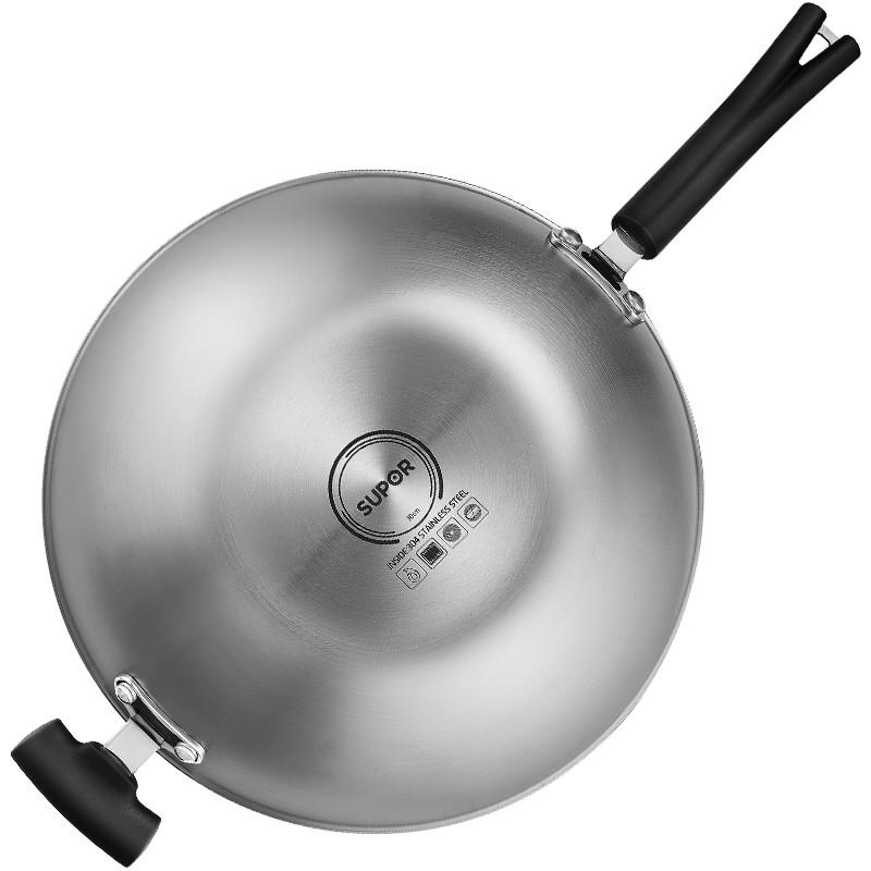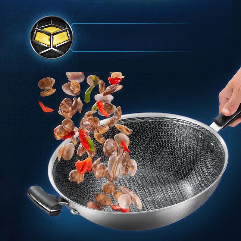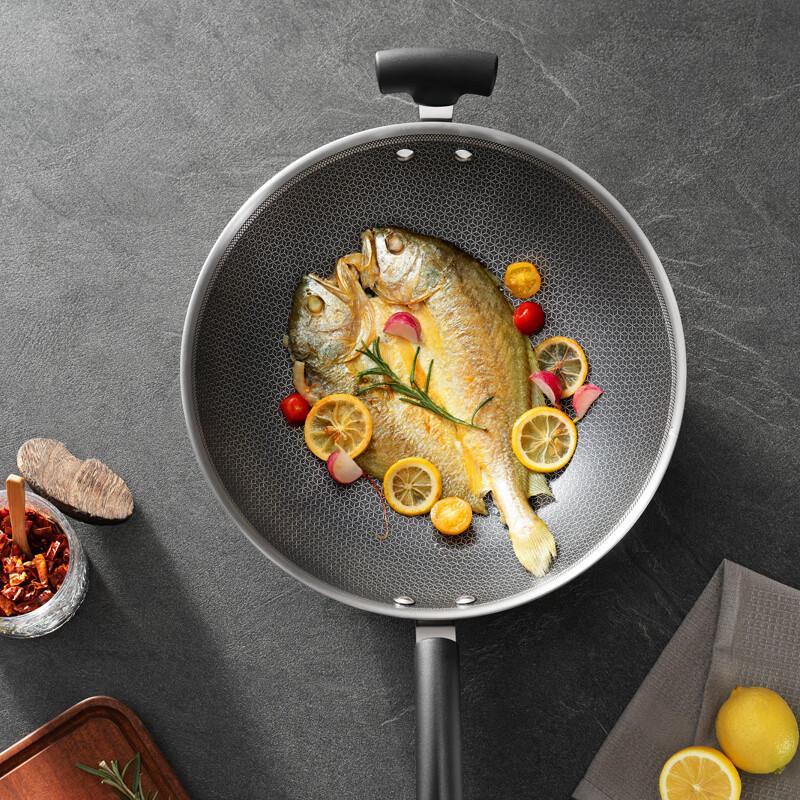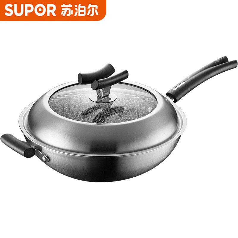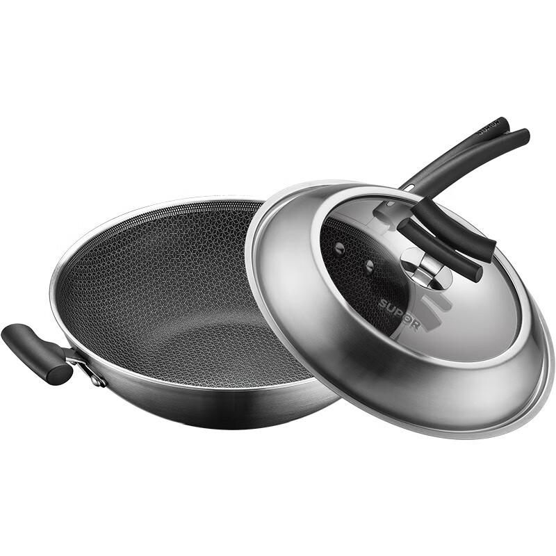 苏泊尔炒锅X晶盾316不锈钢无油烟蜂窝平底防粘锅34cm CC34JA2