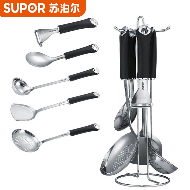 苏泊尔铲勺套装6件套厨房不锈钢锅铲中式铲汤勺漏勺套装 T1011K