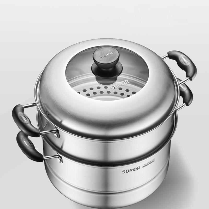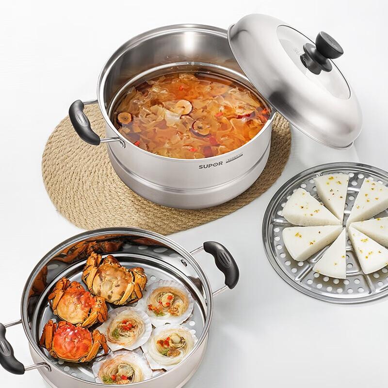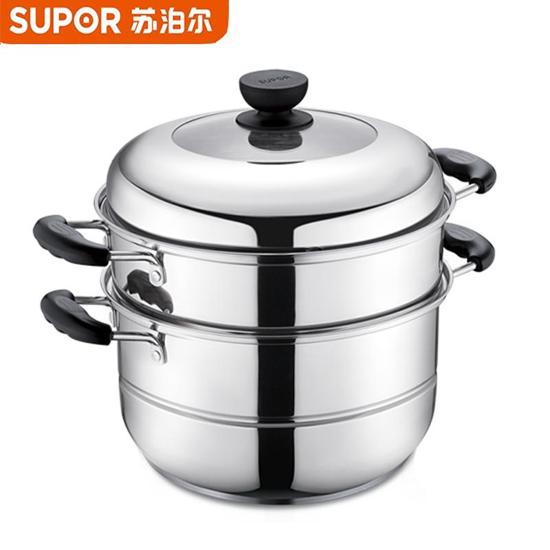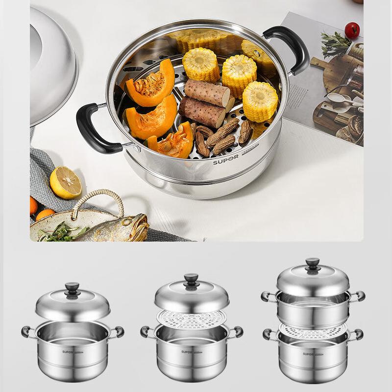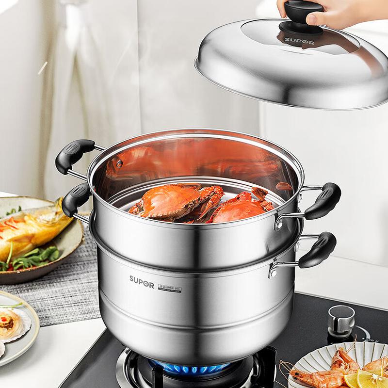 苏泊尔蒸锅加厚锅壁易存储304不锈钢双层复底28cm蒸锅高拱盖汤锅蒸笼 SZ28B2