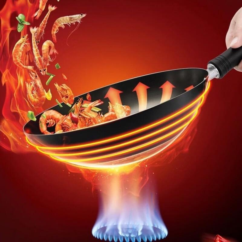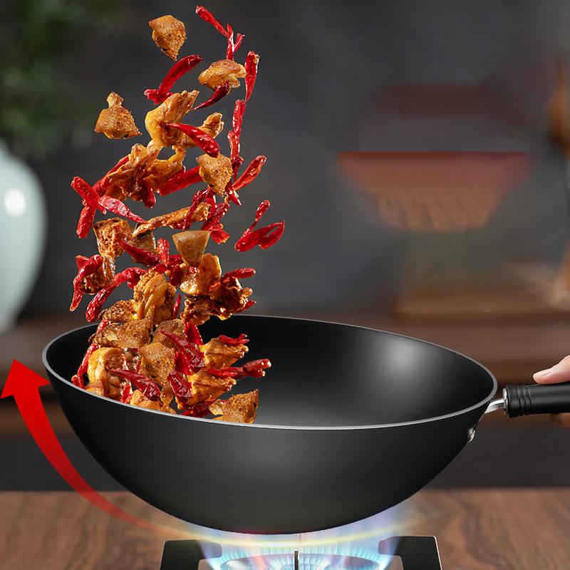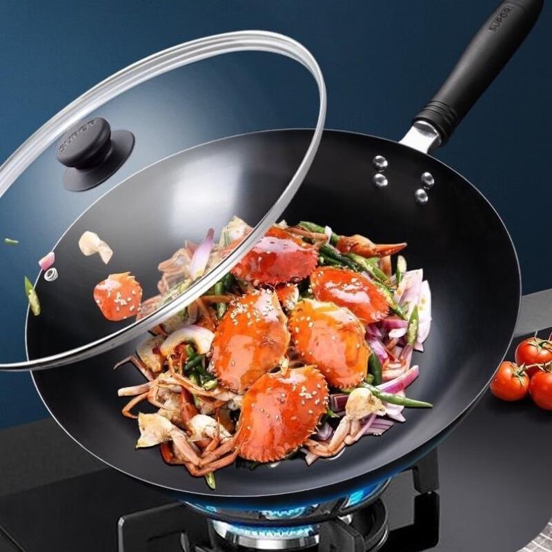 苏泊尔炒锅精铁圆底无涂层老式家用铁锅轻便炒锅