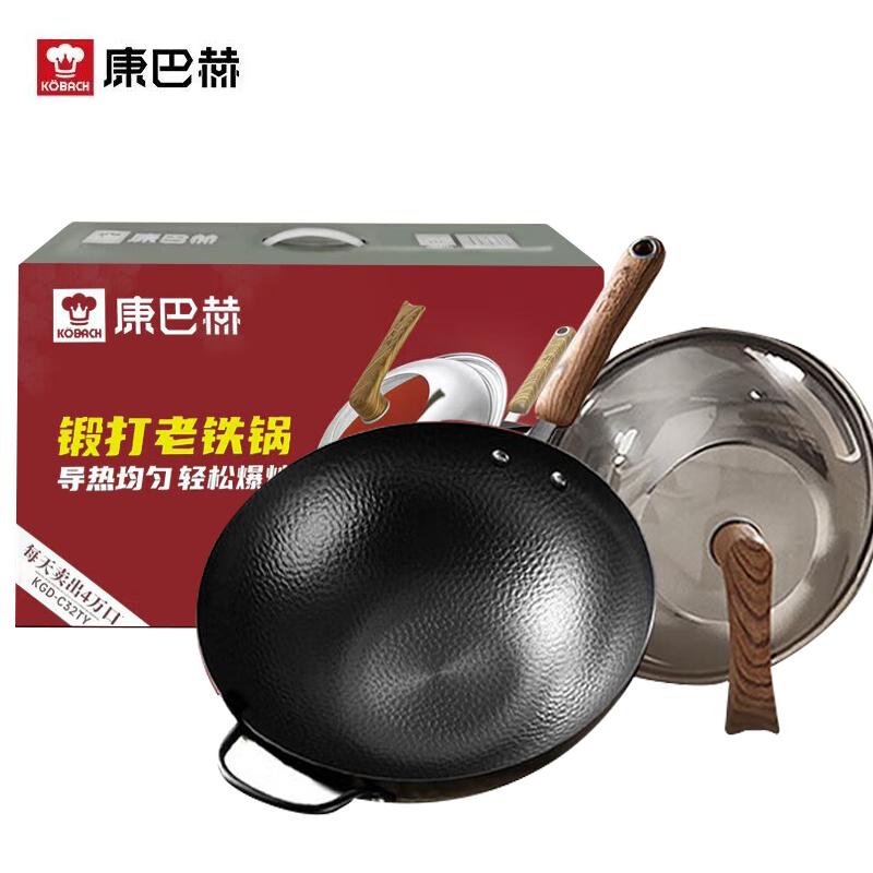 康巴赫(KBH)炒锅精铁锅/铸铁锅家用无涂层老铁锅深氮防锈氮化防锈物理防粘炒菜锅