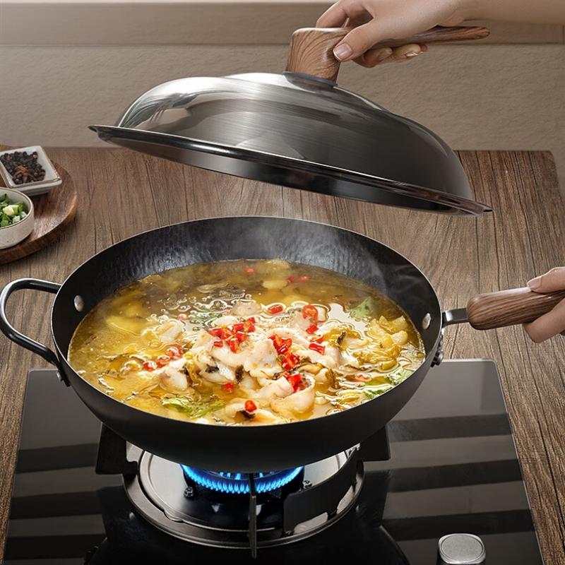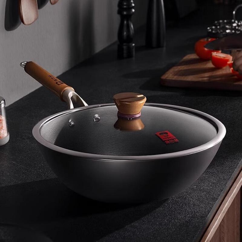仿锤纹炒锅线下专柜同款,禁止干烧,仅明火使用。