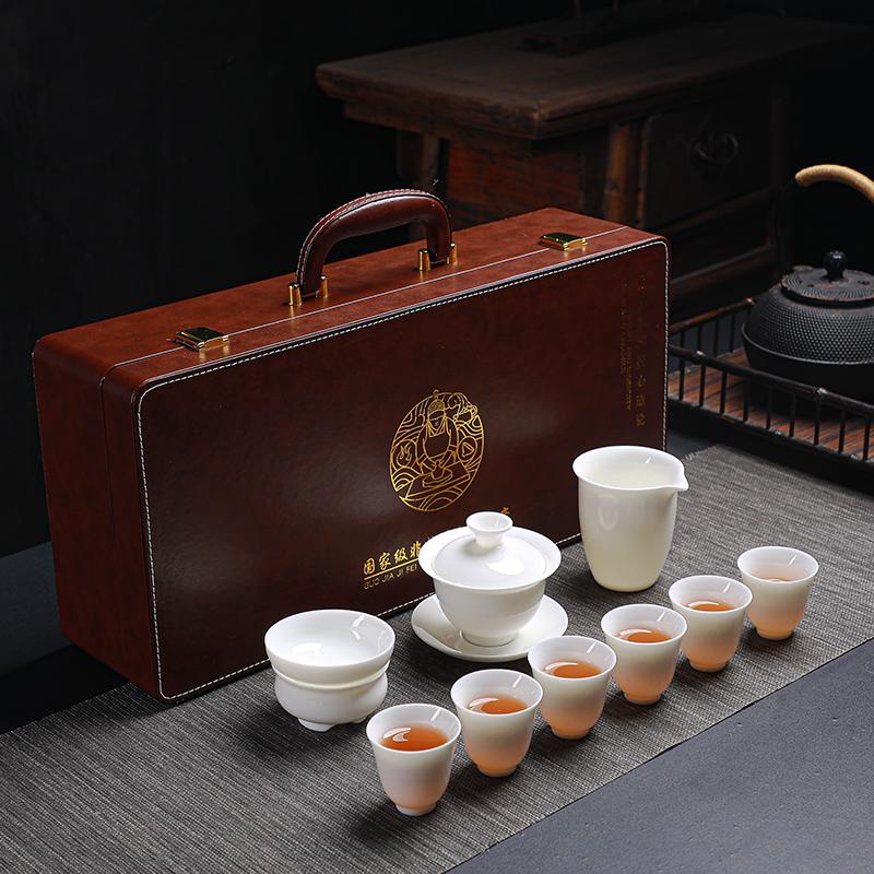 小茶犊 羊脂玉瓷 10头亮光 德化茶具 整套功夫茶具