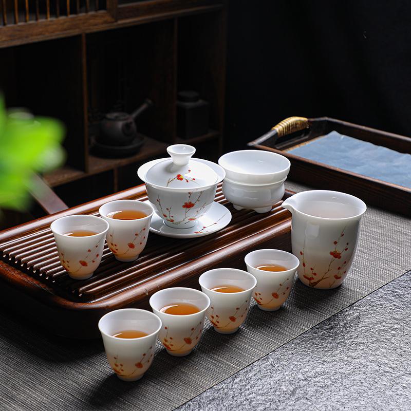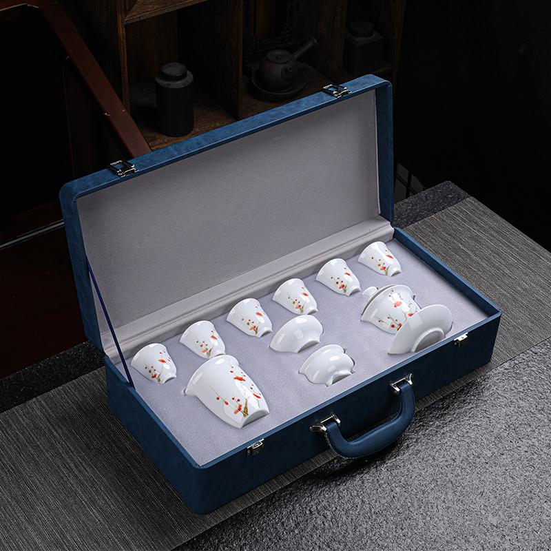 小茶犊 羊脂玉瓷 10头亮光手绘 茶具 功夫茶具 德化茶具
