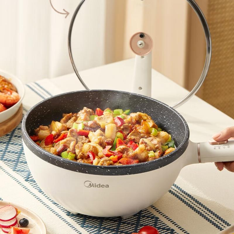 美的(Midea)电炒锅 电煮锅 电蒸锅家用电火锅电热锅多功能4L多用途锅HGE2811C 配蒸屉