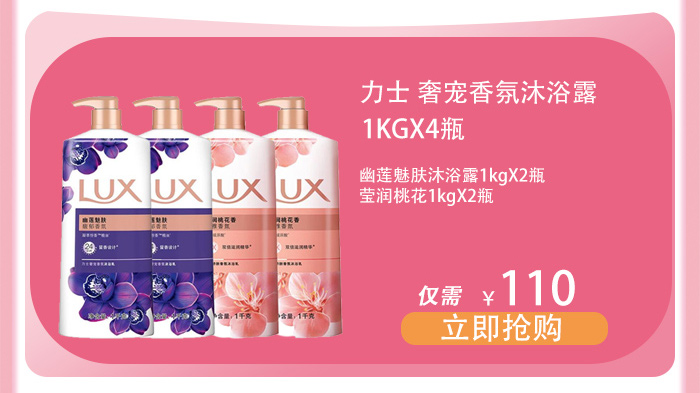 力士 精油香氛沐浴乳沐浴露1kg*4瓶 幽莲魅肤1kg*2瓶+莹润桃花1kg*2瓶