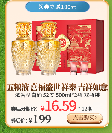 五粮液 喜福盛世 浓香型白酒 52度 【礼盒装】 500ml*2瓶