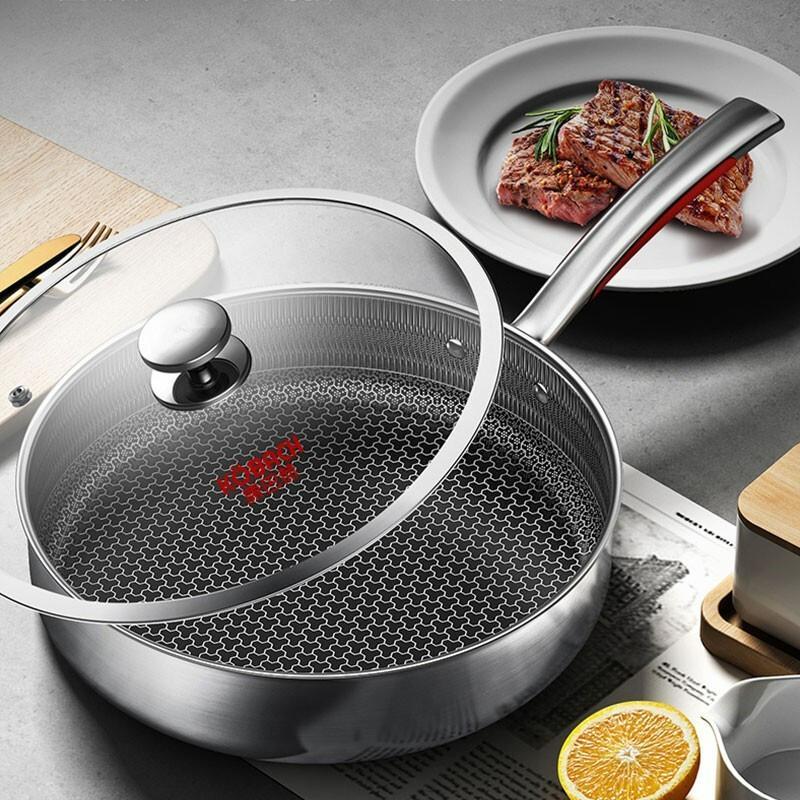康巴赫 三代煎锅316L不锈钢平底锅不粘锅 26cm JFG26A3