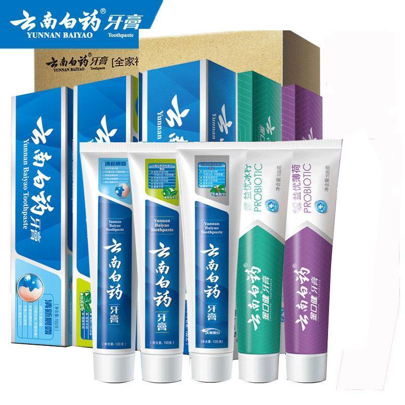 云南白药 牙膏5大支装900g薄荷留兰益生菌清新口气家庭实惠装