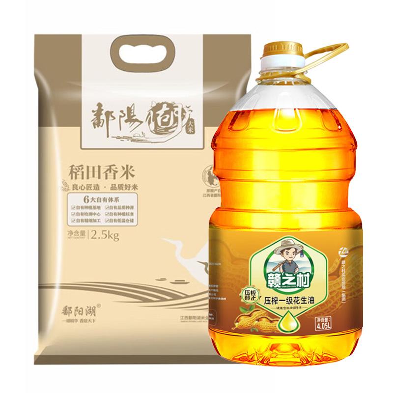 鄱阳湖 大米2斤/10斤/30斤+赣之村花生油4.05L/5L丝苗米江西香稻大米优米一级籼米食用油 粮油特惠组合