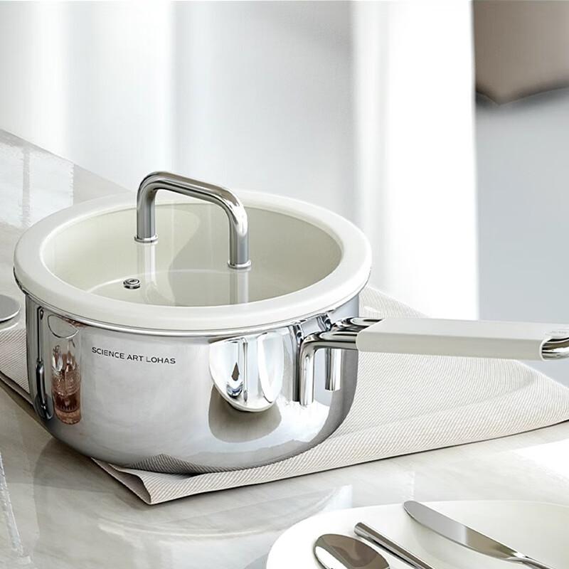 中科德马克 0涂层不锈钢陶瓷不粘奶锅 煎蒸煮一体煮泡面小汤锅辅食锅