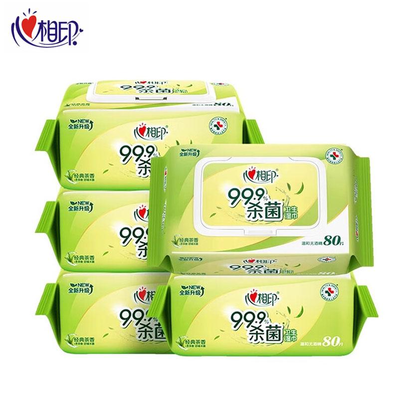 心相印【80抽*5包】湿巾大包加厚湿纸 99.9%杀菌消毒经典茶香清洁独立包装卫生湿巾