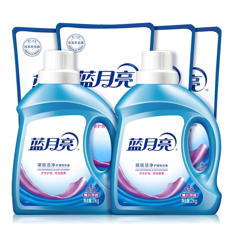 蓝月亮 薰衣草洗衣液深层洁净套装香 洁净16斤 2kg*2瓶+1kg*4袋